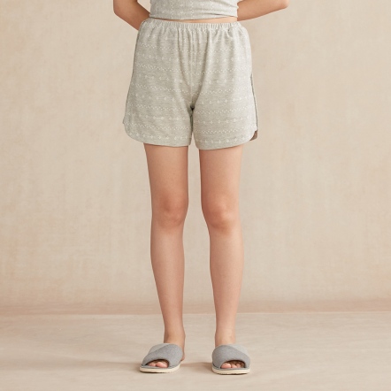 雨林馬來貘印花拼接短褲-鵝絨黃