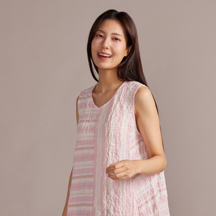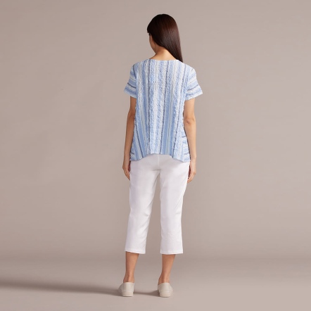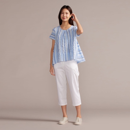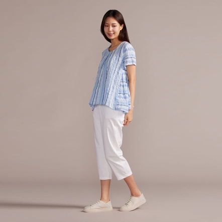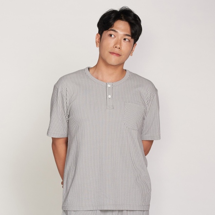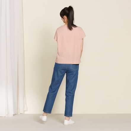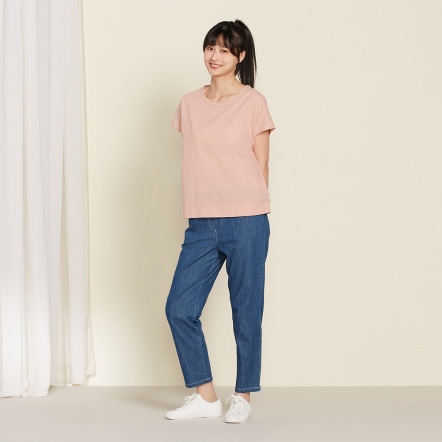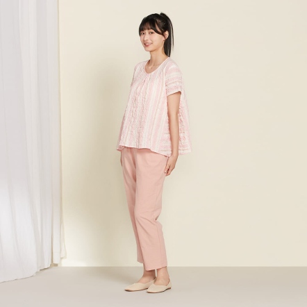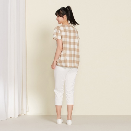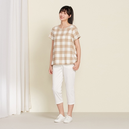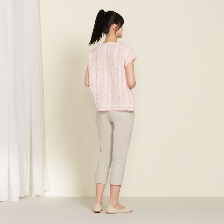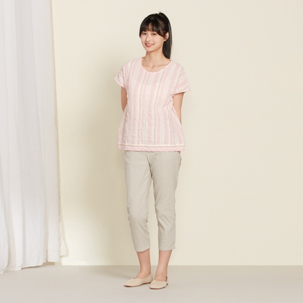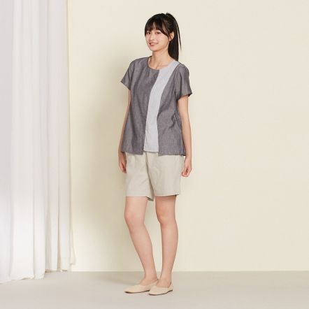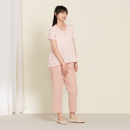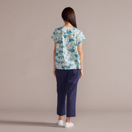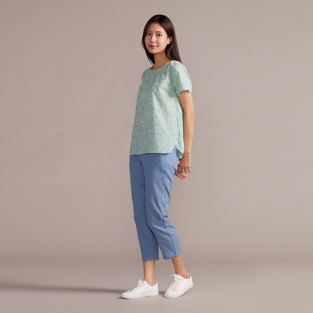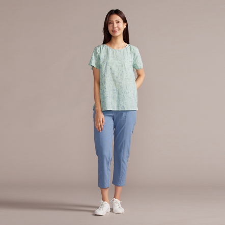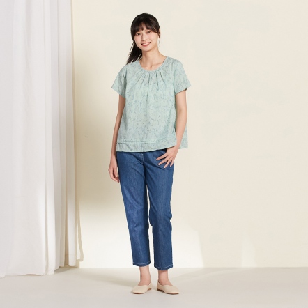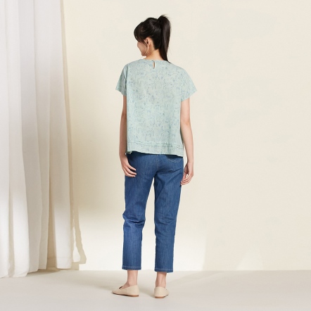 棉麻暈染印花半開襟短袖上衣-薄荷綠