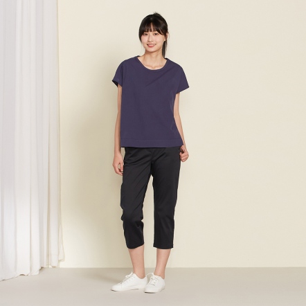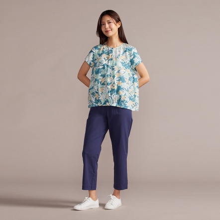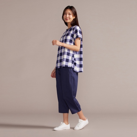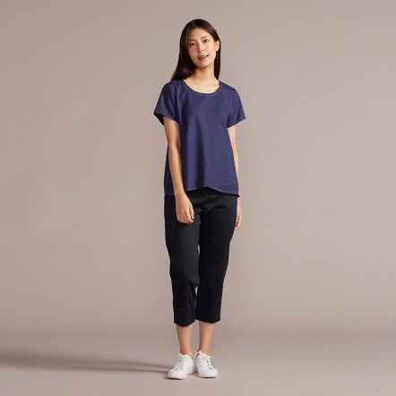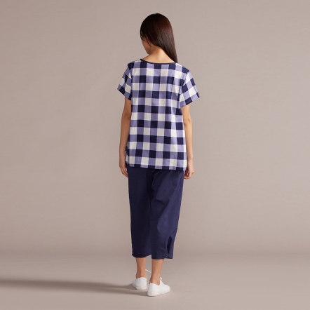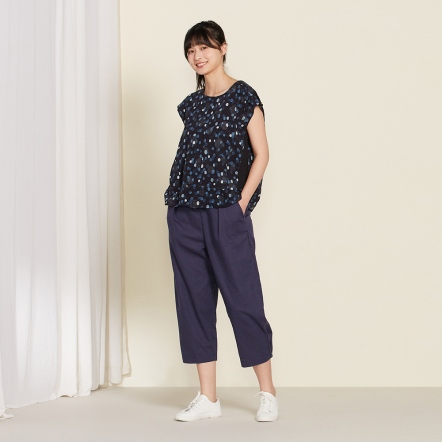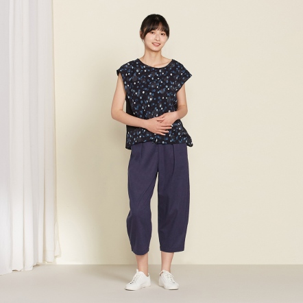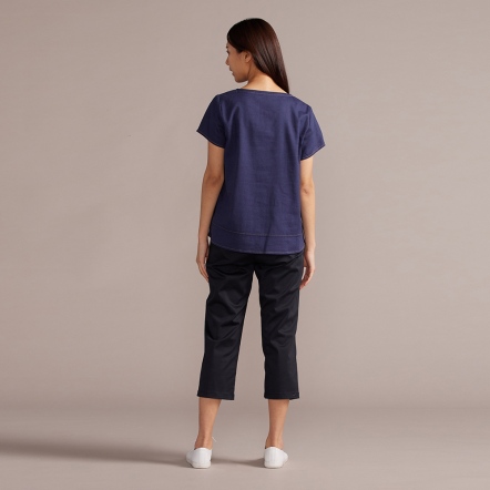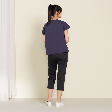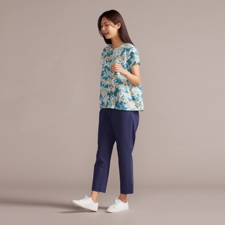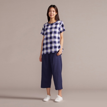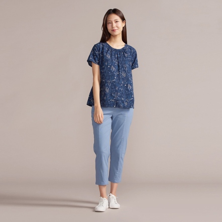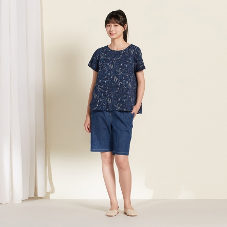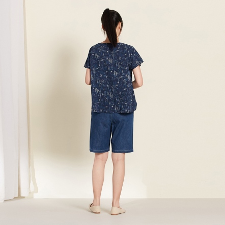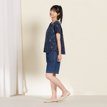 【薄荷紗】網路限定 | 水豚網印短袖上衣-深藍