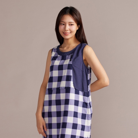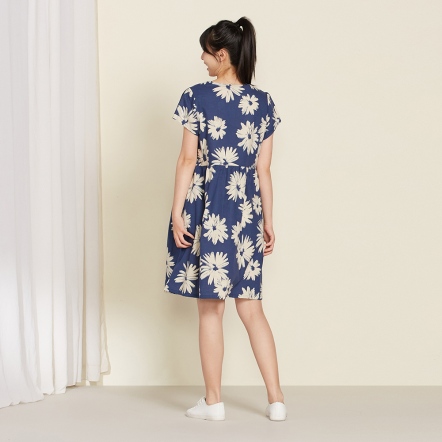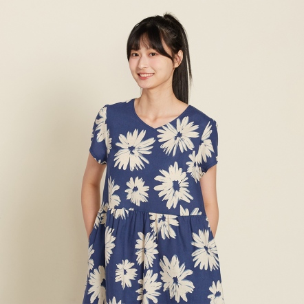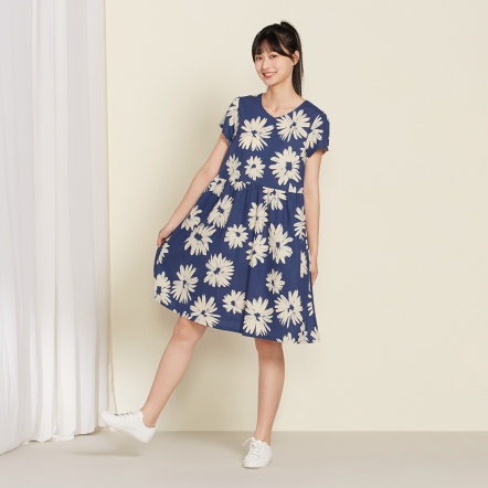 【薄荷紗】網路限定 | 水豚網印短袖洋裝-深藍