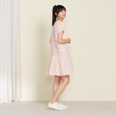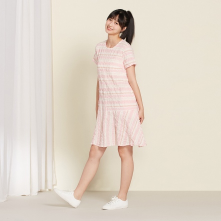 【膠原美膚】網路限定 | 愛心網印短袖洋裝-迷霧灰