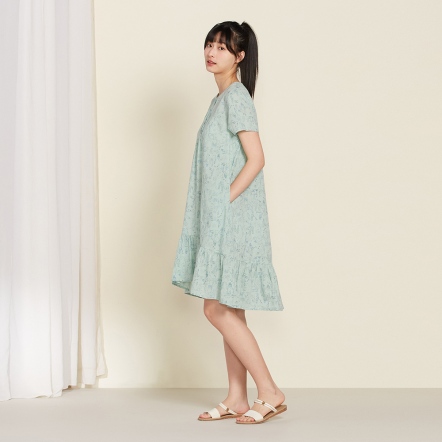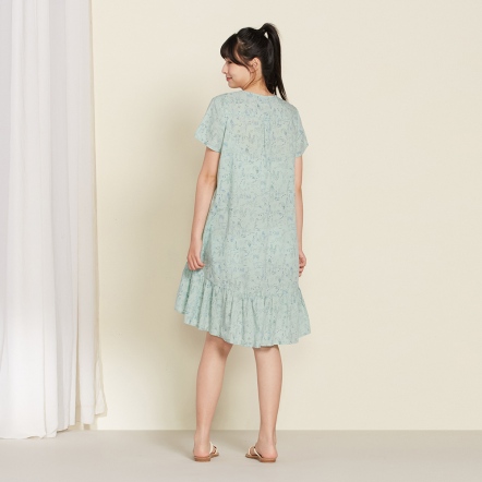 動物叢林印花半開襟短袖洋裝-薄荷綠