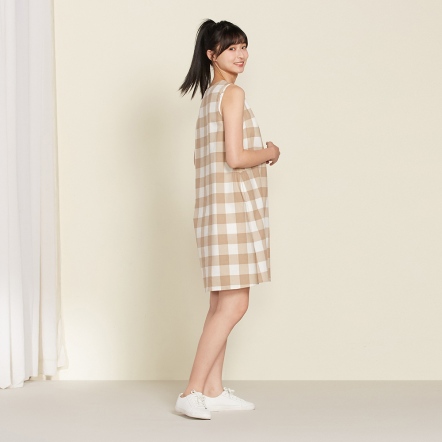 【薄荷紗】網路限定 | 水豚網印短袖洋裝-金合歡黃