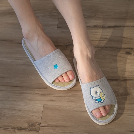 LINE FRIENDS|熊大假期藺草室內拖鞋-寧靜灰(M/L/XL)