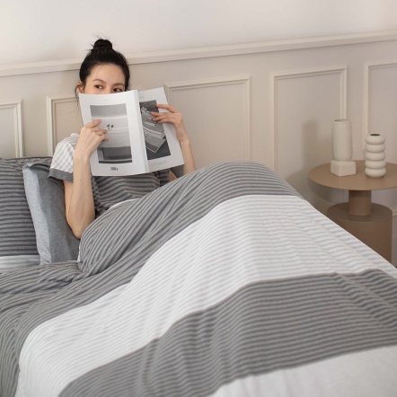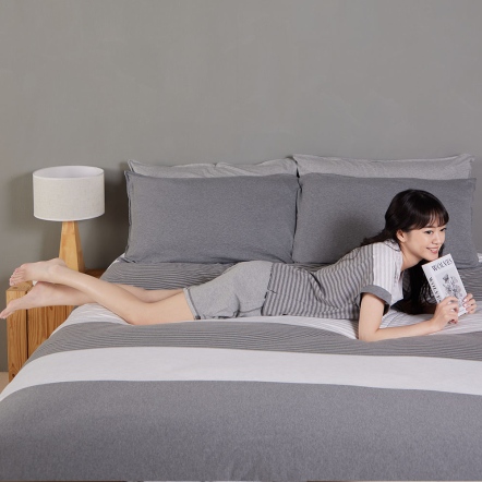 晨光條紋 被套+枕套組-岩石灰