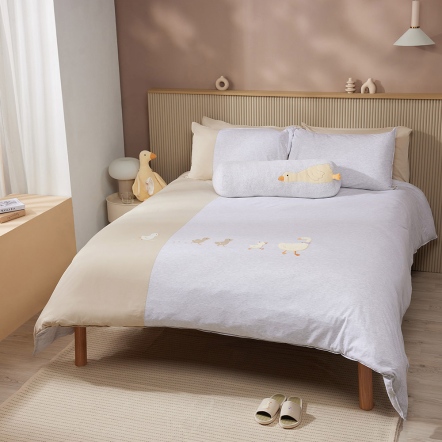 漫游鵝 被套+枕套組-銀白灰/奶霜杏