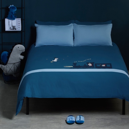 金喜兔 雙人被套+枕套三件組-寶石藍