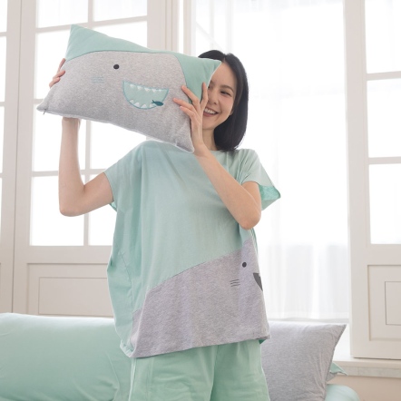 鯊魚遠航 被套+枕套組-薄荷綠