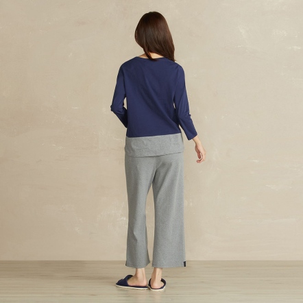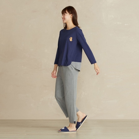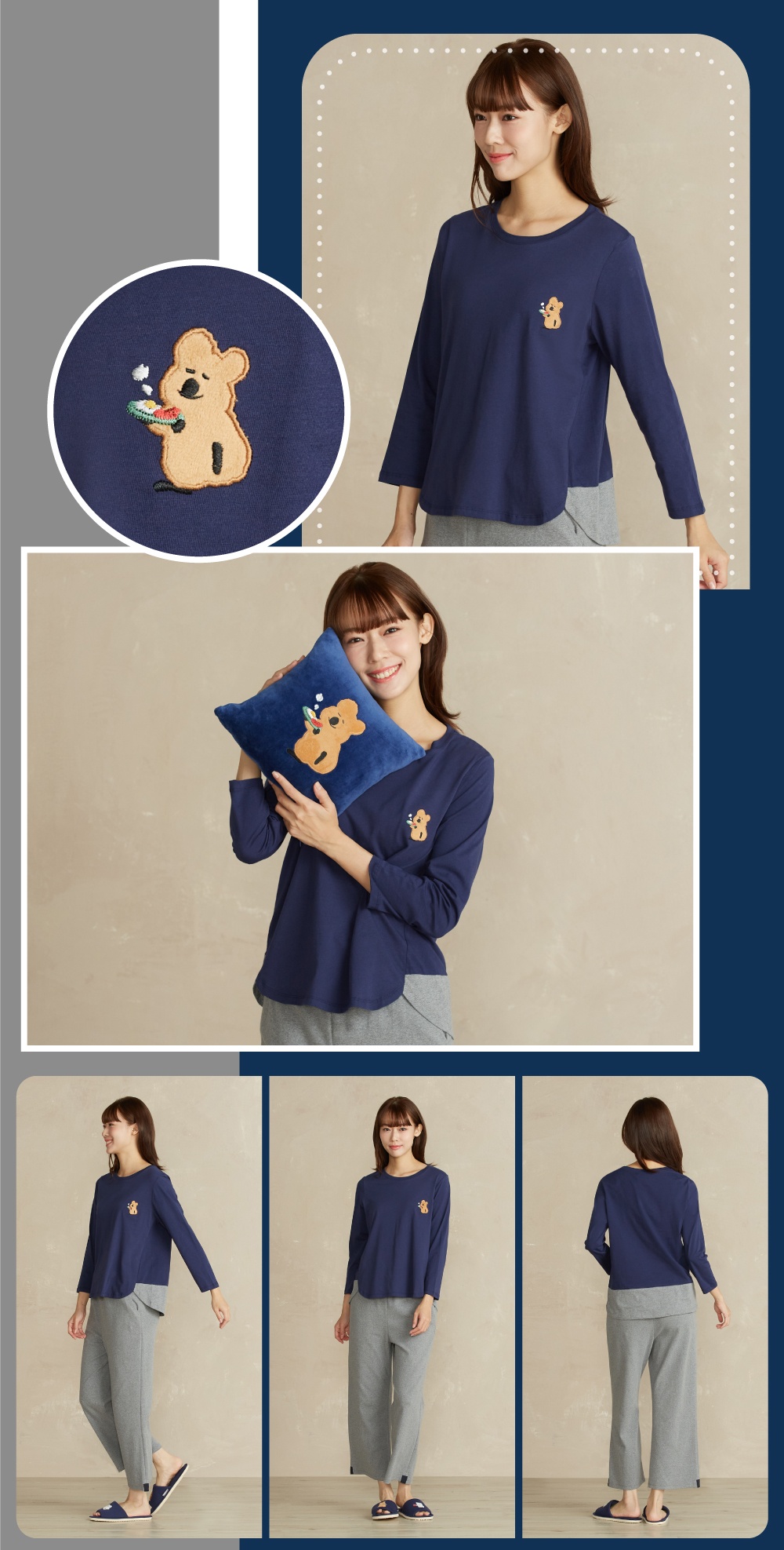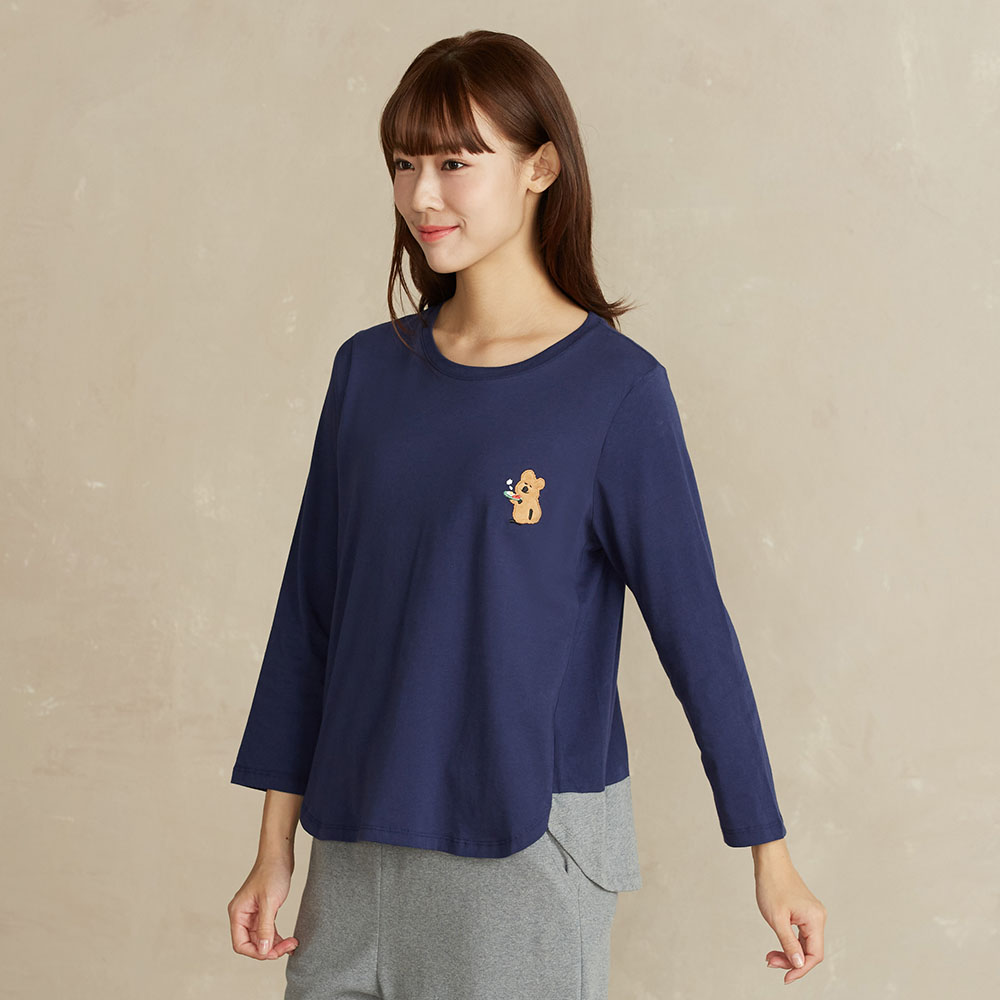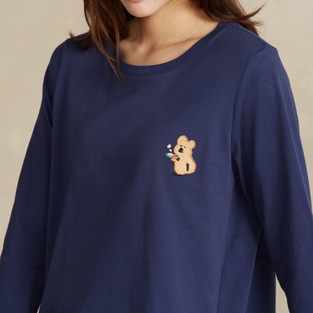 DINOTAENG | 早餐繡花剪接上衣-星海藍