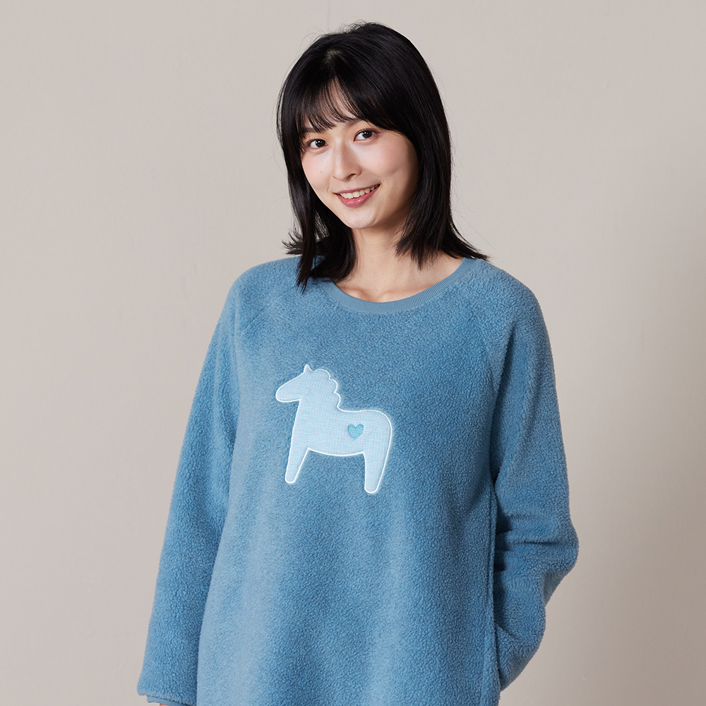 配上俏⽪的冰島馬貼布繡,是冬天保暖好選擇!