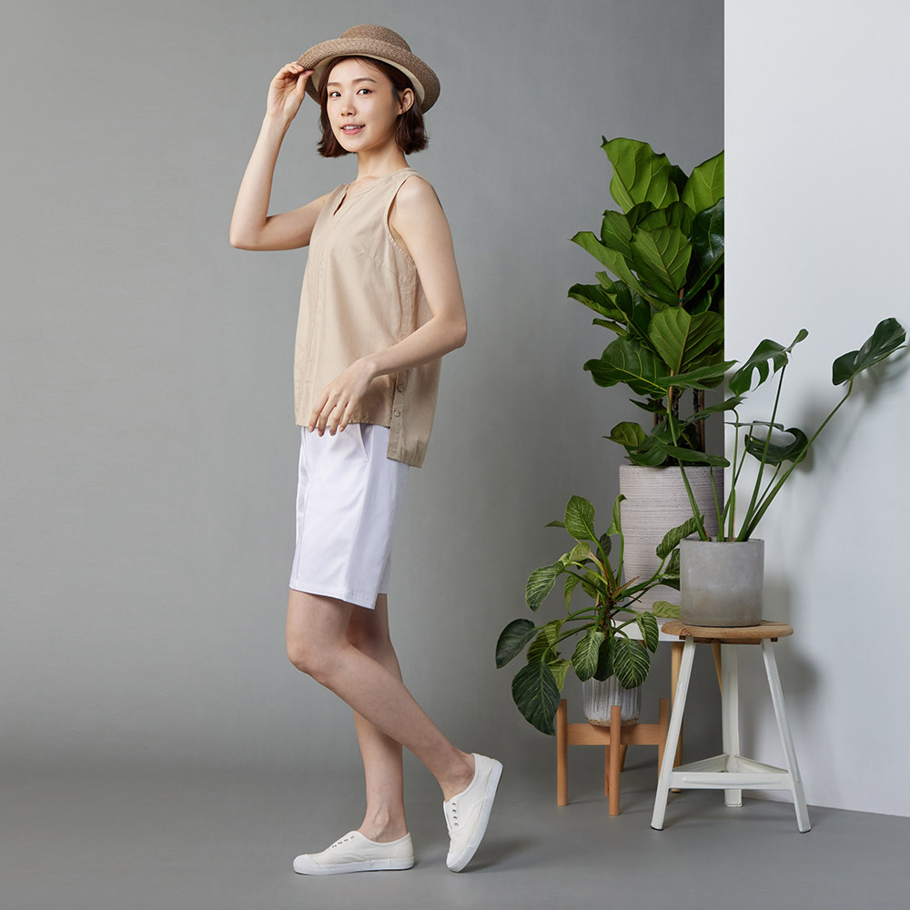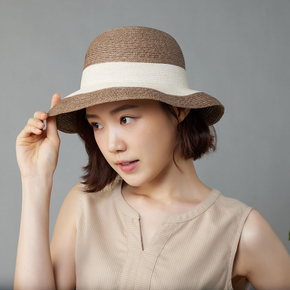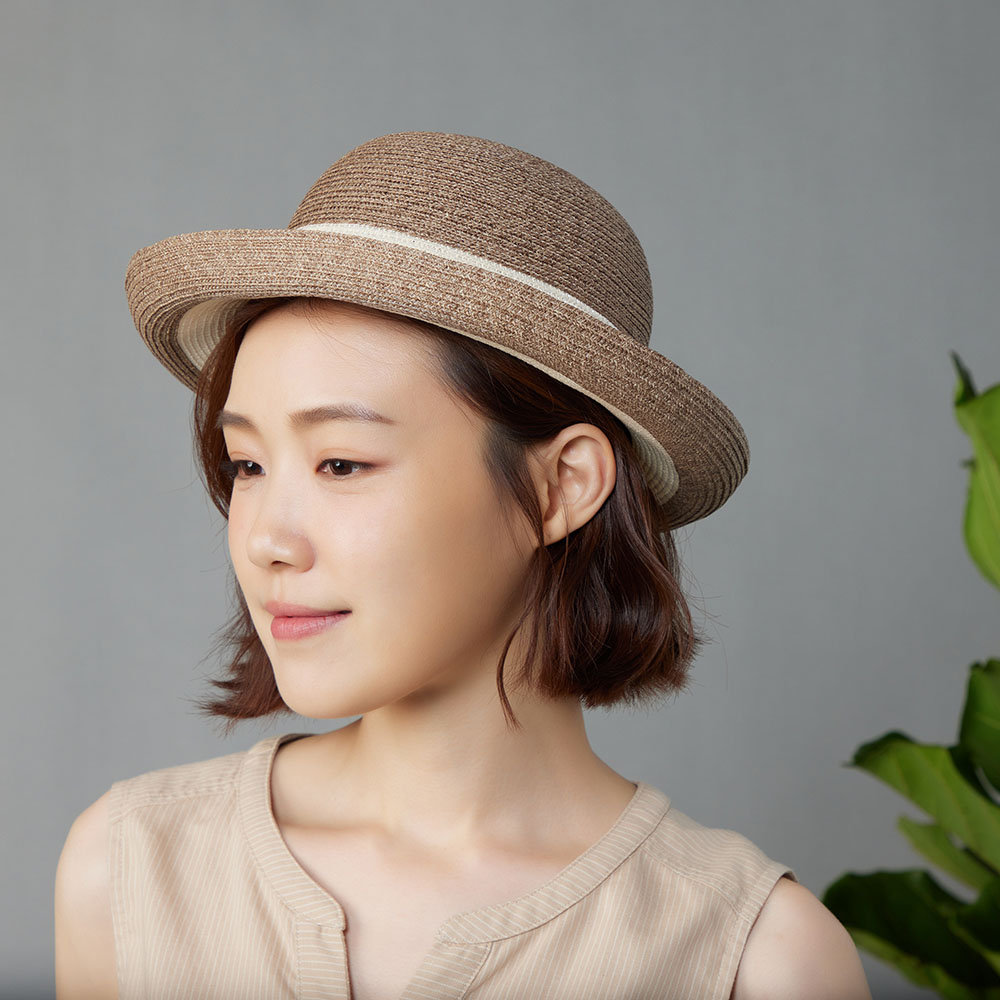 紙編寬條草帽-卡其色