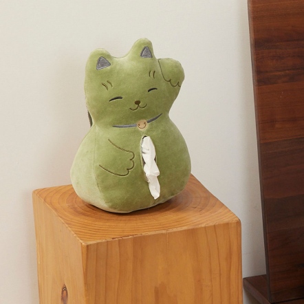 招財貓車用面紙套-抹茶綠
