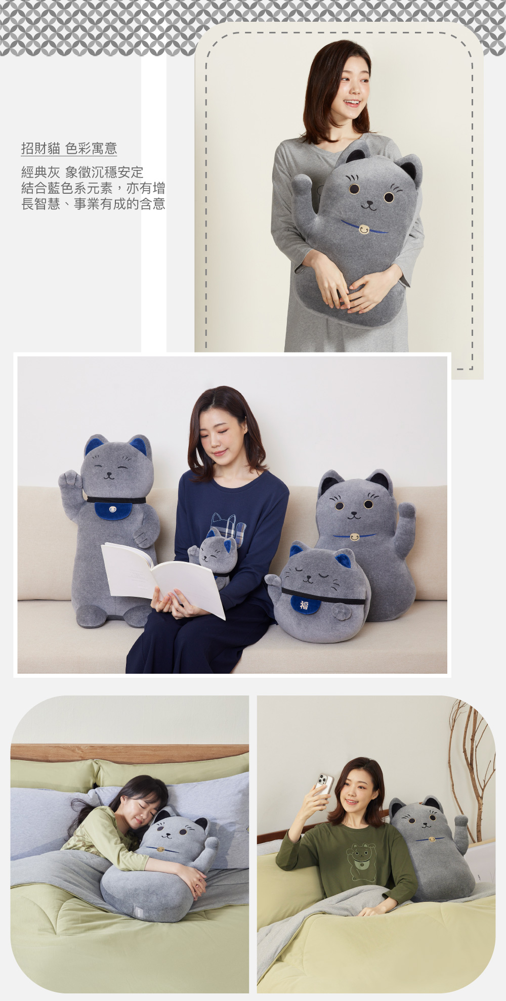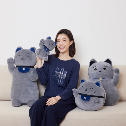 招財貓抱枕-岩石灰