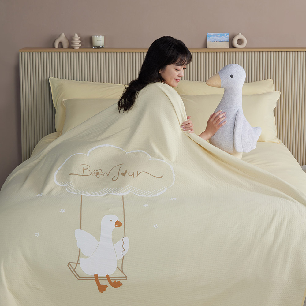 鞦韆鵝 薄紗毯-鵝絨黃