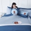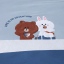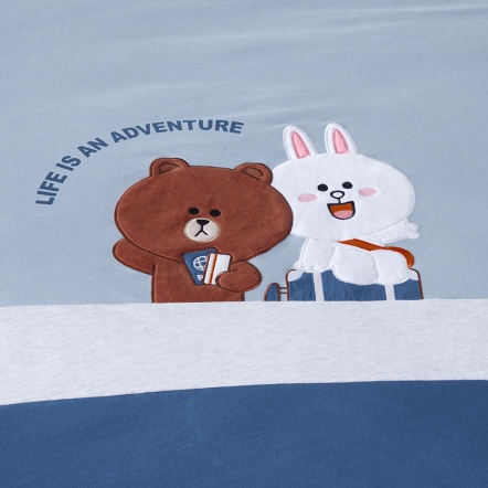 正面:運河藍素色底/浪花壓紋+熊大兔兔旅行貼布繡+網印