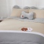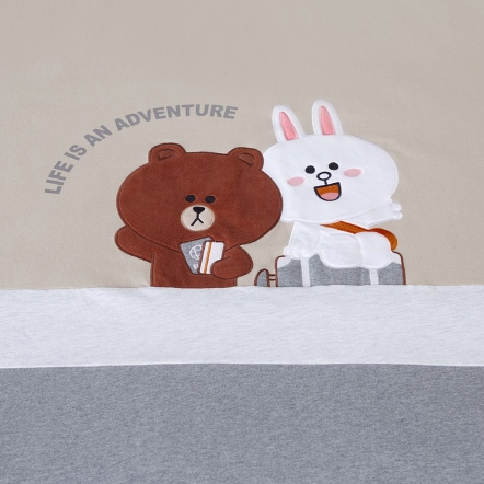 正面:奶茶棕素色底/浪花壓紋+熊大兔兔旅行貼布繡+網印